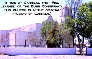It was at Carrizal that Pike learned of Burr’s conspiracies in the U S. From Carrizal, Pike continued south on the Camino Real arriving at Chihuahua on the 2nd of April where he remained until the 28th.